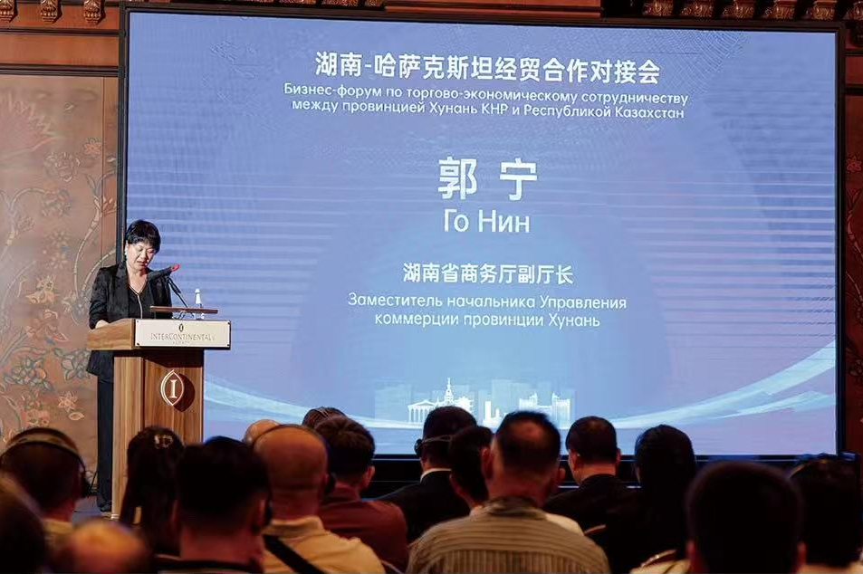 ▲郭寧副廳長在致辭中介紹,湖南區(qū)位優(yōu)越、產(chǎn)業(yè)基礎扎實。她強調(diào),哈薩克斯坦是湖南對外開放合作重點區(qū)域,2024年湘哈進出口額達7.5億美元,同比增長36.2%。(圖片轉載自公眾號@湖南省對外經(jīng)濟合作企業(yè)協(xié)會)